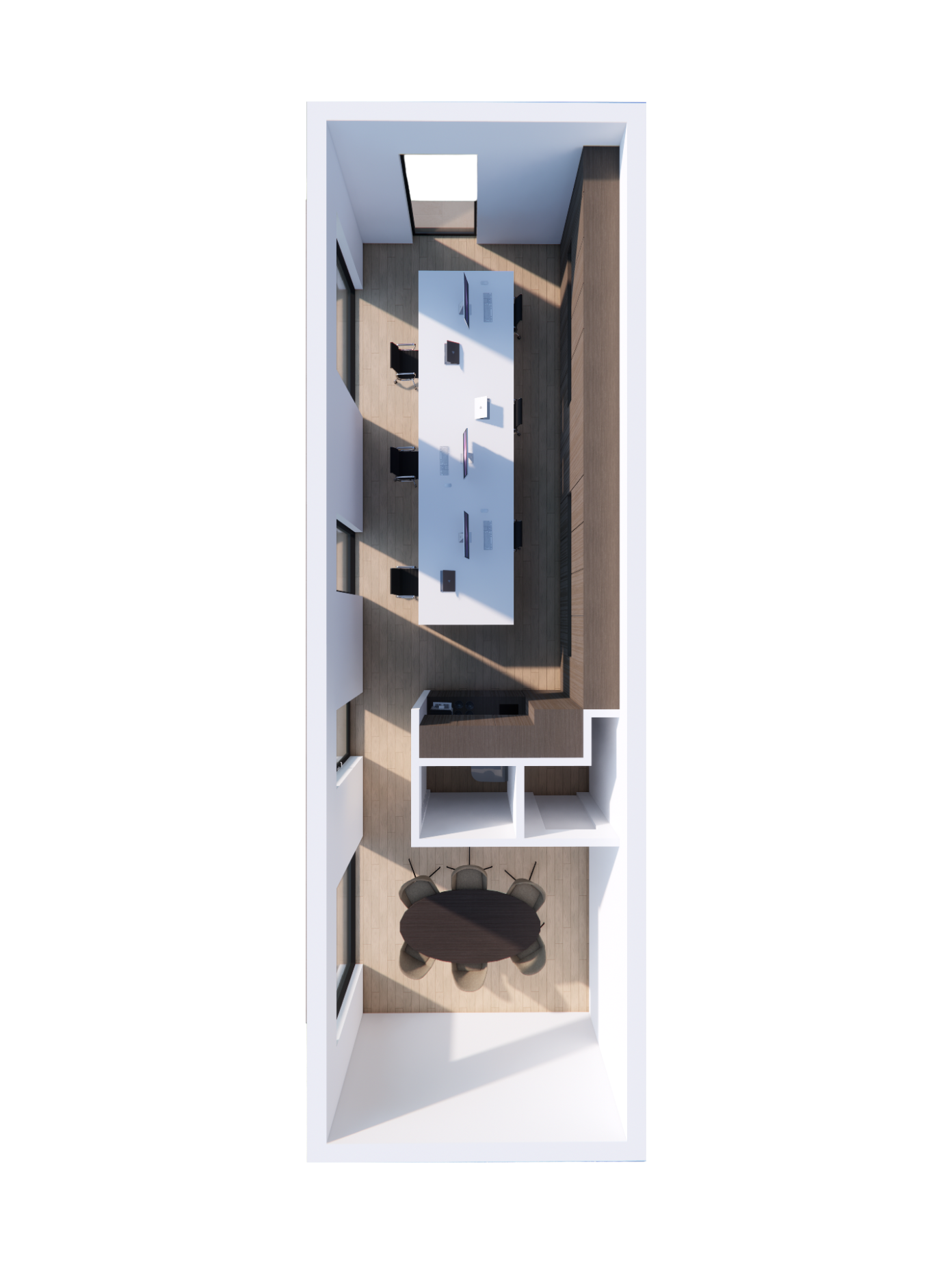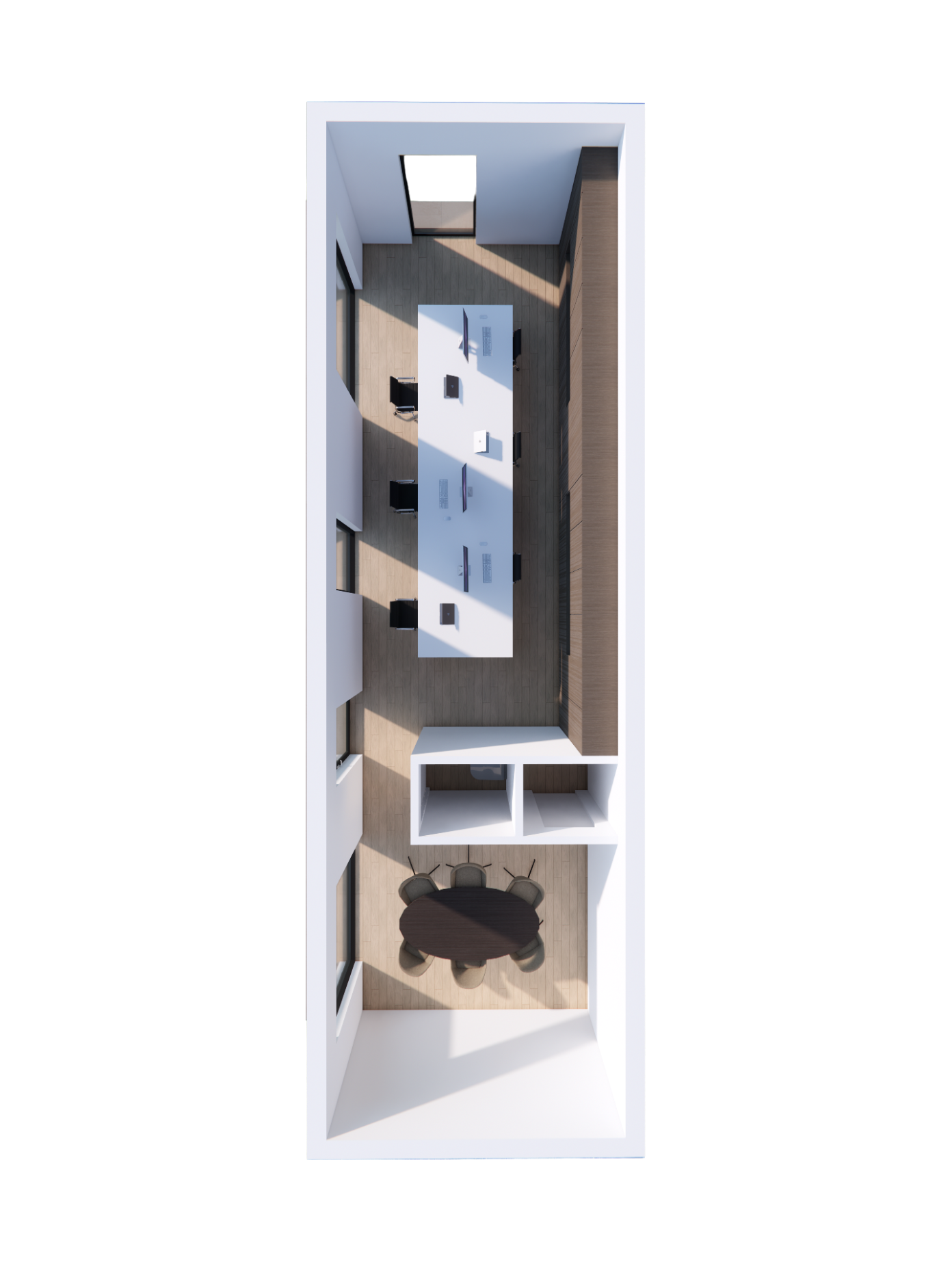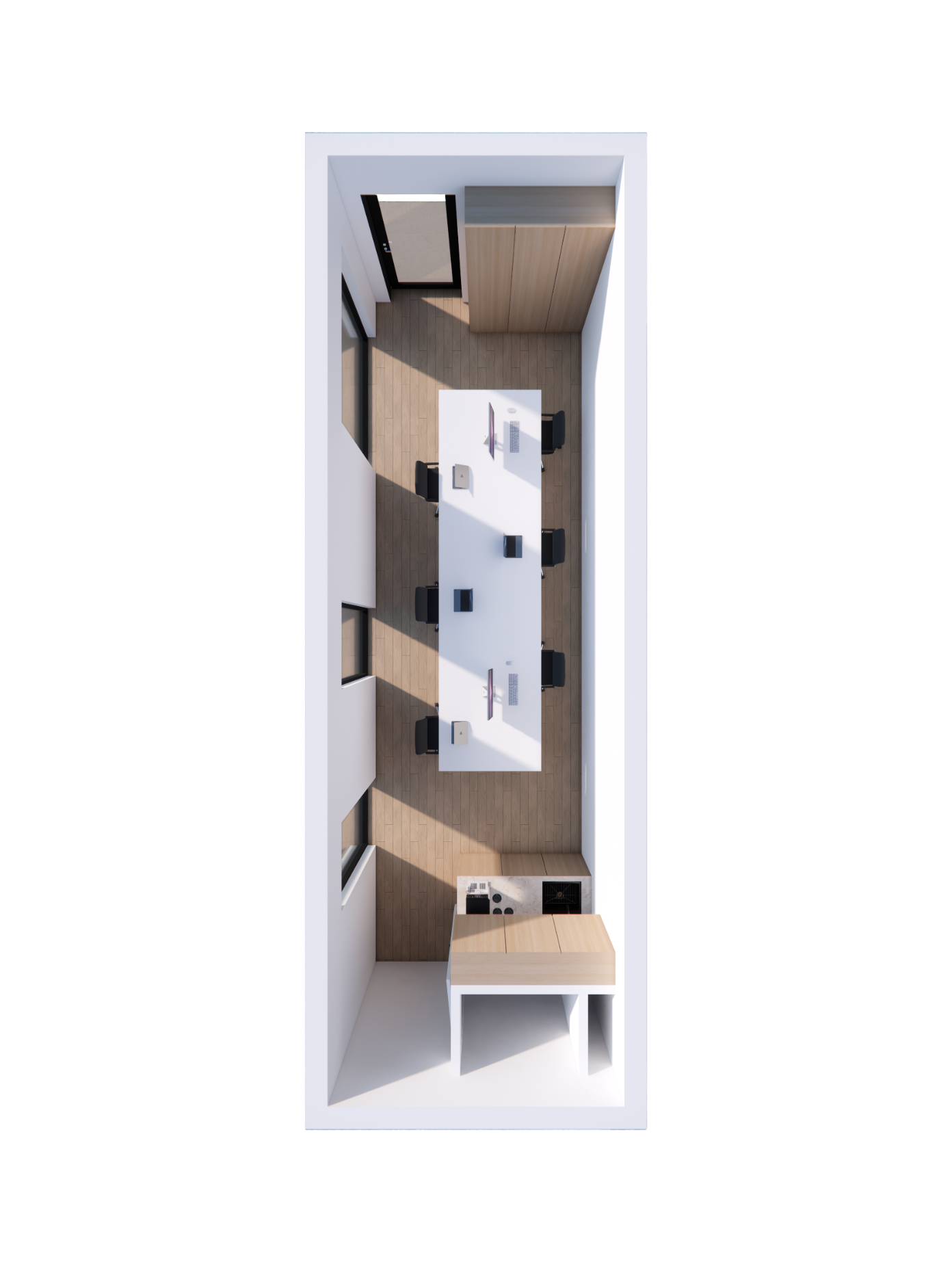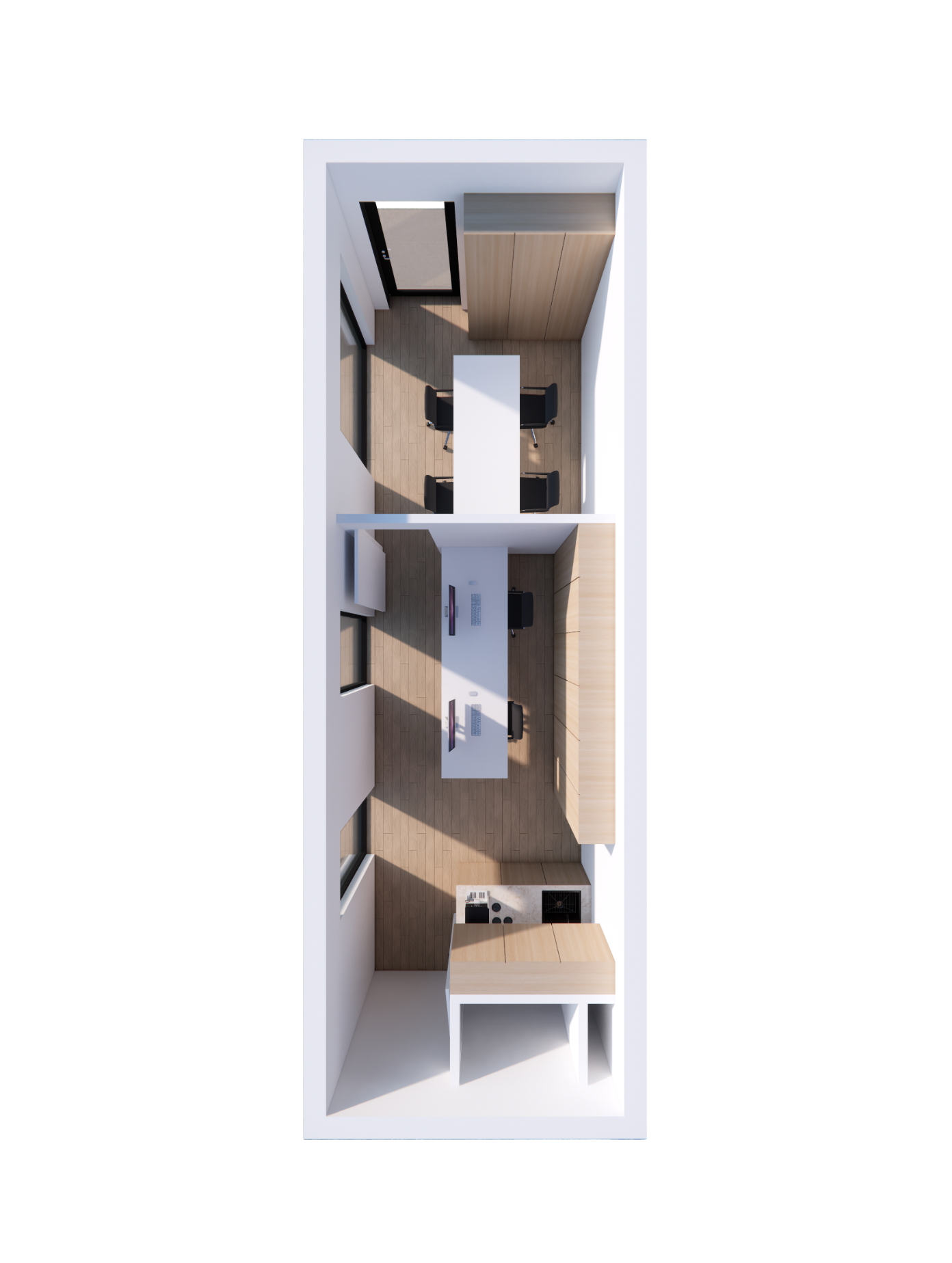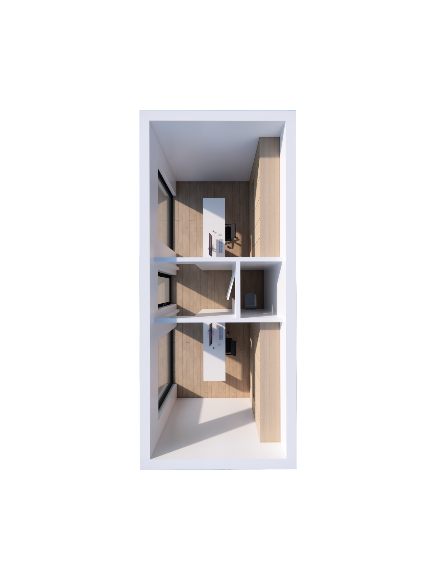 Medium grote unit ideaal om met 2 in 1 ruimte samen te werken. Ingericht als gemeenschappelijke kantoorruimte.
