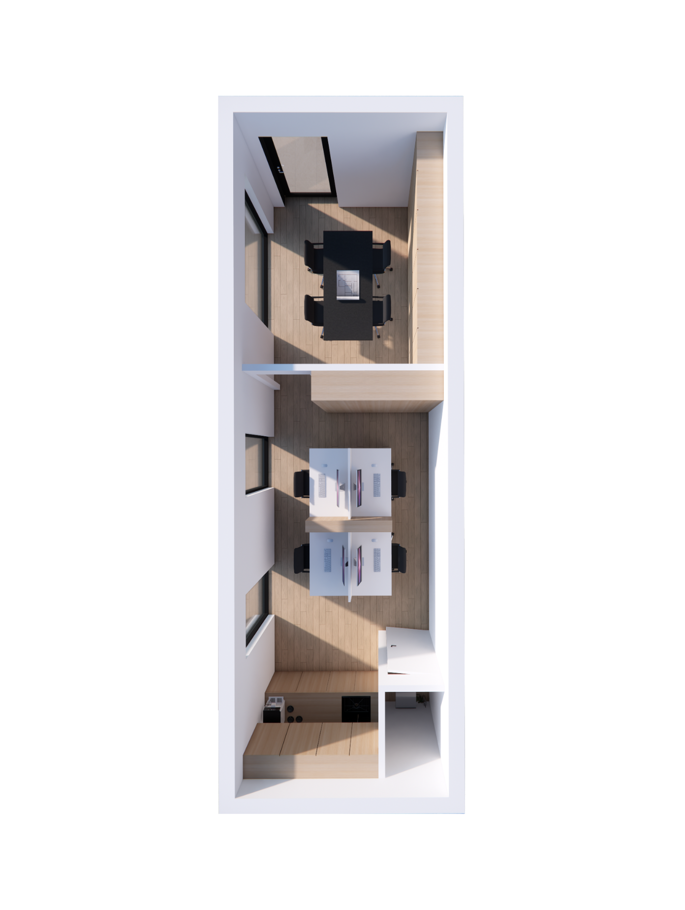Bloq Hub kantoorunit van 35 m² met aparte ruimtes en 4 werkplekken, ideaal voor teams die samenwerking willen combineren met privacy.
